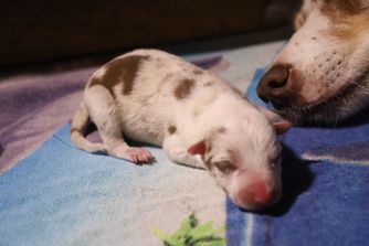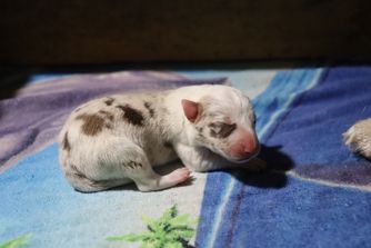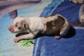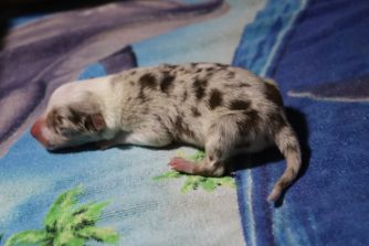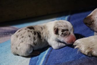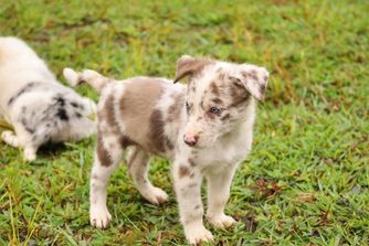 Our puppies include red merle, black, and red. Colors will vary depending on the parent dogs.