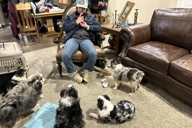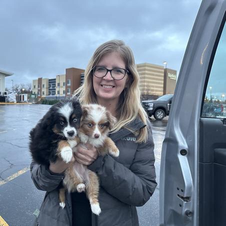 I'm Karla M., the breeder behind Bar M Toy Aussies located in Lame Deer, MT. Our pups are raised in our home on our horse ranch in southeastern Montana. Our breeding dogs are carefully selected for temperament, disposition, confirmation, trainability and good toy Aussie breed standards. We socialize our puppies with children, cats, other dogs, lots of handling and love.