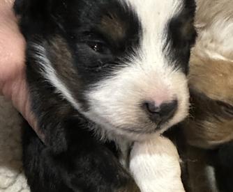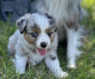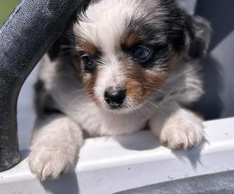 Our puppies include black tri, blue merle, red merle, and red tri. Colors will vary depending on the parent dogs.