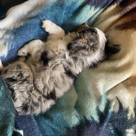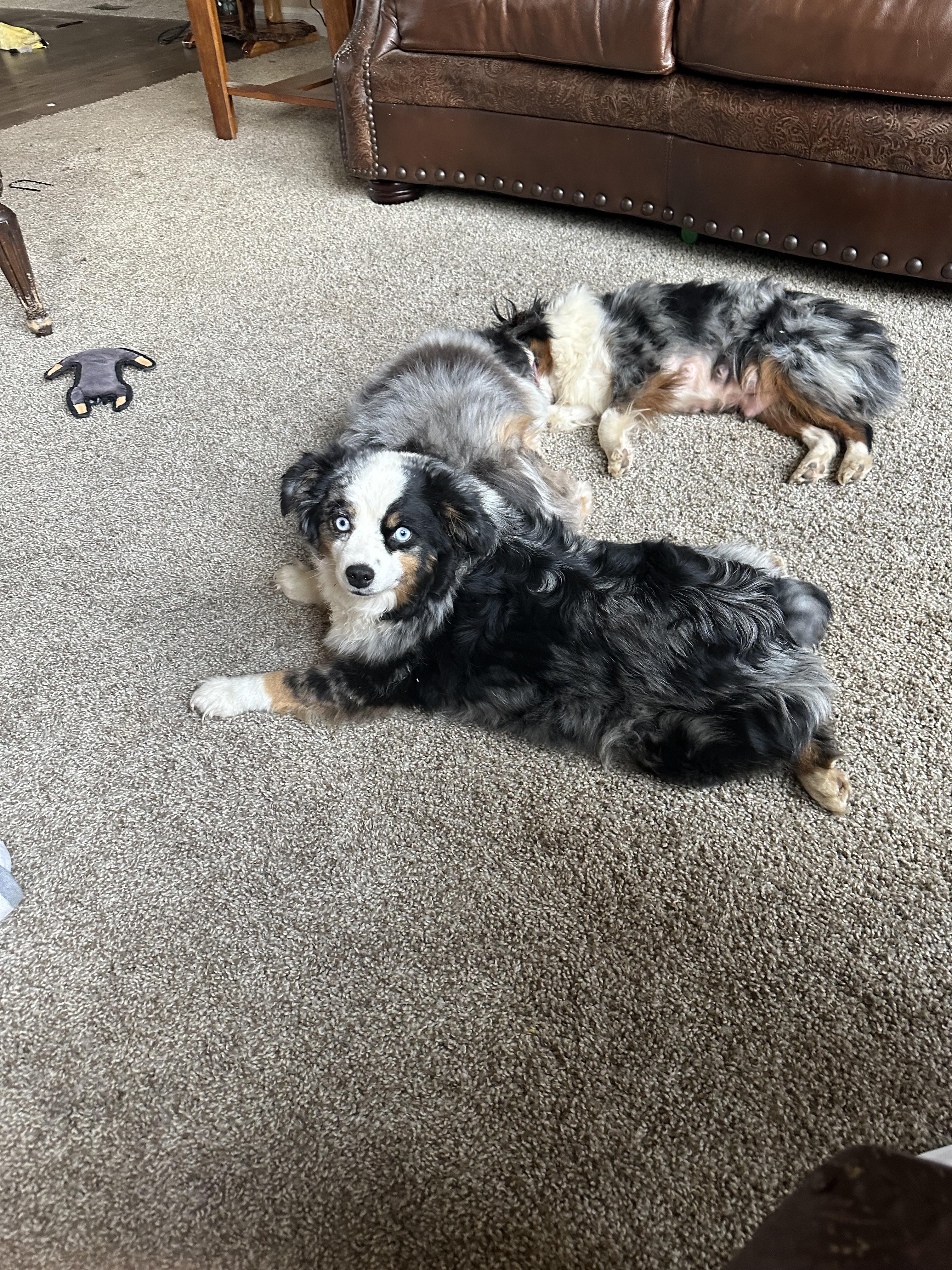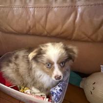 This gorgeous blue merle male is still available! He will be a larger toy or a small mini and he is absolutely adorable! He’s very very playful and outgoing and loves people!