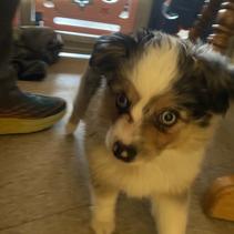 Siri is a stunning colored blue Merle female. Her copper is gorgeous. She’s high energy and a loyal, one person dog.