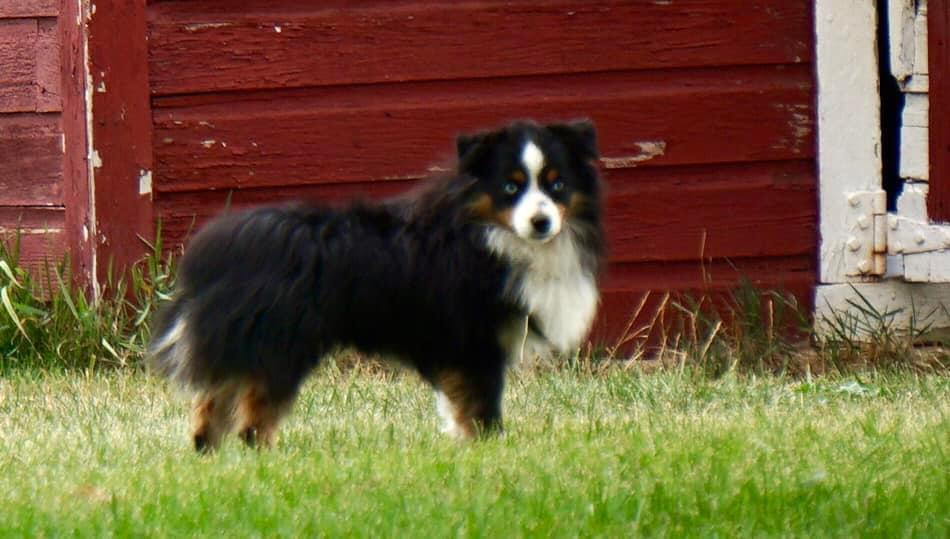 Our dogs are not raised in a kennel. They get to run around and play and learn how to be puppies on the ranch. Our dogs are very well mannered and bred for good dispositions they are smart, trainable, and fun to have as dogs! We also strive to raise quality toys with REAL Australian Shepherd characteristics.