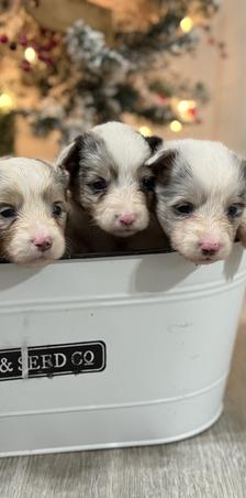“All pups pricing is for pet homes only & possible discussion of full rights, age appropriate vaccinations, and deworming. All babies are raised in our home and are loved on every day. Your non refundable deposit holds your sweet puppy until pick up.”