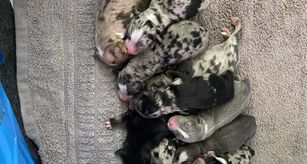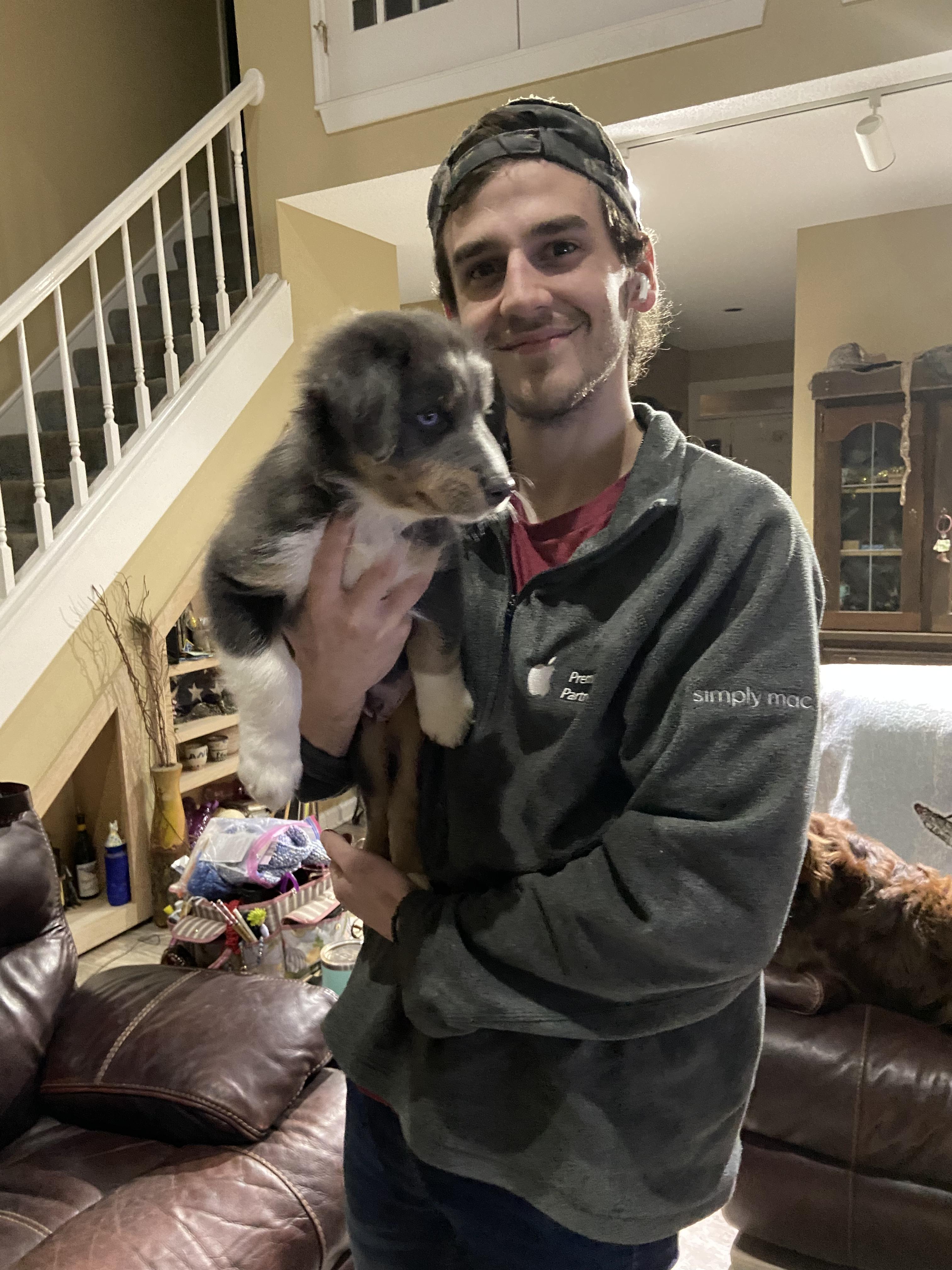 Our puppies include blue merle, black tri-color, and red tri-color. Colors will vary depending on the parent dogs.
