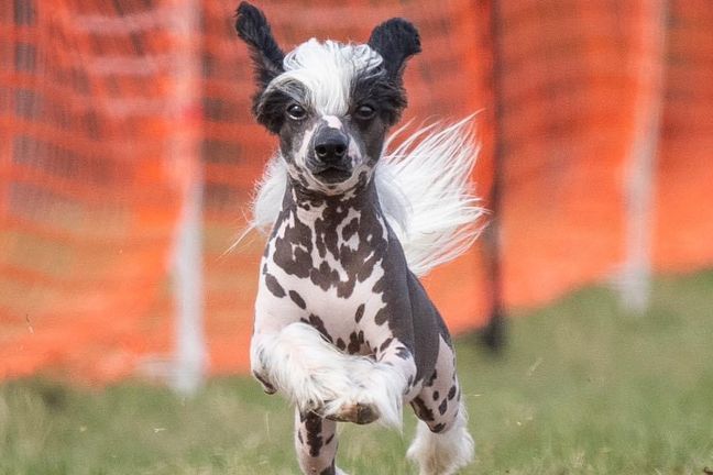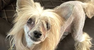Rella is a hairy hairless AKC Chinese Crested. She is a lover of all people big and small. She is a fun little dog who keeps us entertained with her crazy spins, zoomies and gremlin noises. Rella has multiple AKC titles in home manners, CGC, FitDog, Farm Dog, multiple Trick dog titles and she is one run away from her first FastCat Title. Rella is a great example of a well bred Crested and has had full health and genetic testing and has her AKC CHIC number. She is a wonderful mama and raises beautiful well adapted puppies.