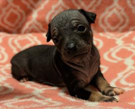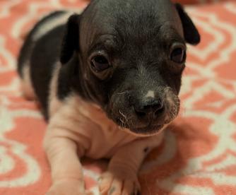 Our puppies have hairless coats. Coat types may vary depending on the parent dogs.