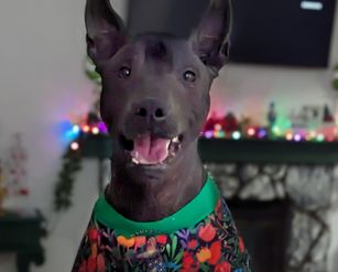 Chimalma is a female Xoloitzcuintli. Carefully selected as a great representative of her breed, Brianna decided to make her part of their program. Brianna has passed Good Dog’s screening process, which involved a review of their breeding practices, environment, and the mental and physical health of their dogs.