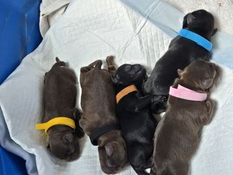 Our puppies include red, brown, belge, black and tan, and black. Colors will vary depending on the parent dogs.