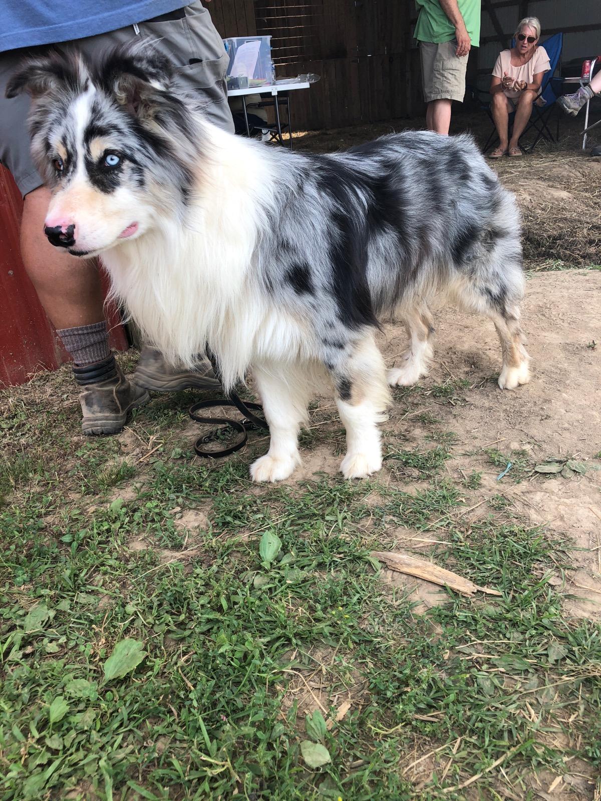 Slash is a rare Self Blue Merle. No tan or white. Very friendly and outgoing. He started working sheep and ducks at 4 mos old. He is very easy to train and eager to please. He has his AKC Farm Dog Certification, CGC(A), and CGC(U). He is a working therapy dog through Pet Partners. He is OFA’d Good/Normal. He is AKC/ASCA