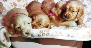 Our puppies include piebald and cream. Colors will vary depending on the parent dogs.