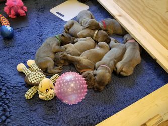Our puppies are raised using both Suzanne Clothier's Early Puppy Protocols and what is commonly called Puppy Culture. These programs are vetted, are science based, and focus on laying a foundation for our puppies create a positive emotion response to many of our worlds novelties.