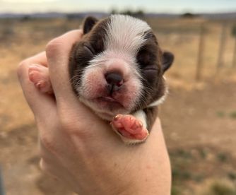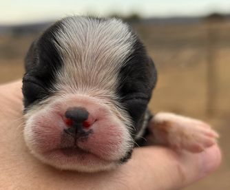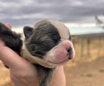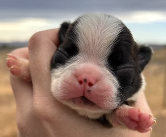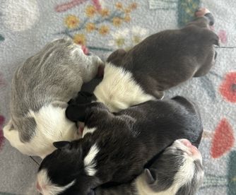 Our puppies include seal and white, black and white, and seal brindle and white. Colors will vary depending on the parent dogs.