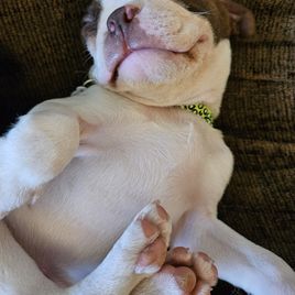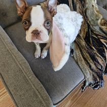 Indie is a very exuberant and loving girl. She loves to play and be in my lap. She is a cream Boston.