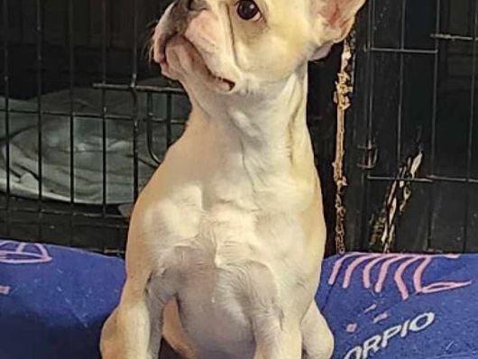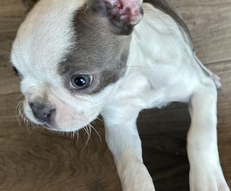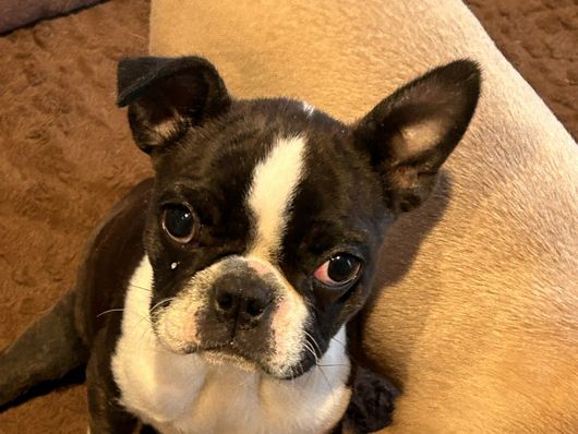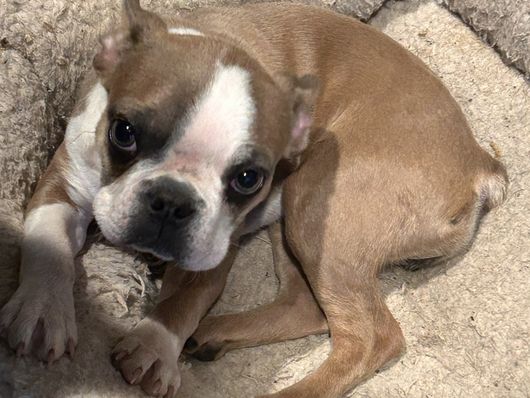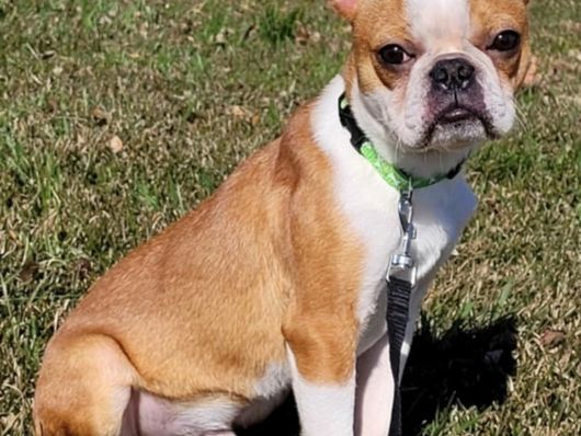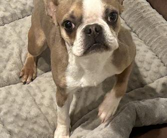 Charlie is a loving independent little guy. He is sweet and active. He is a cream, fawn and tri carrier Boston and weighs 16 lbs. He will be either retiring this spring or traveling to Idaho for a new program.