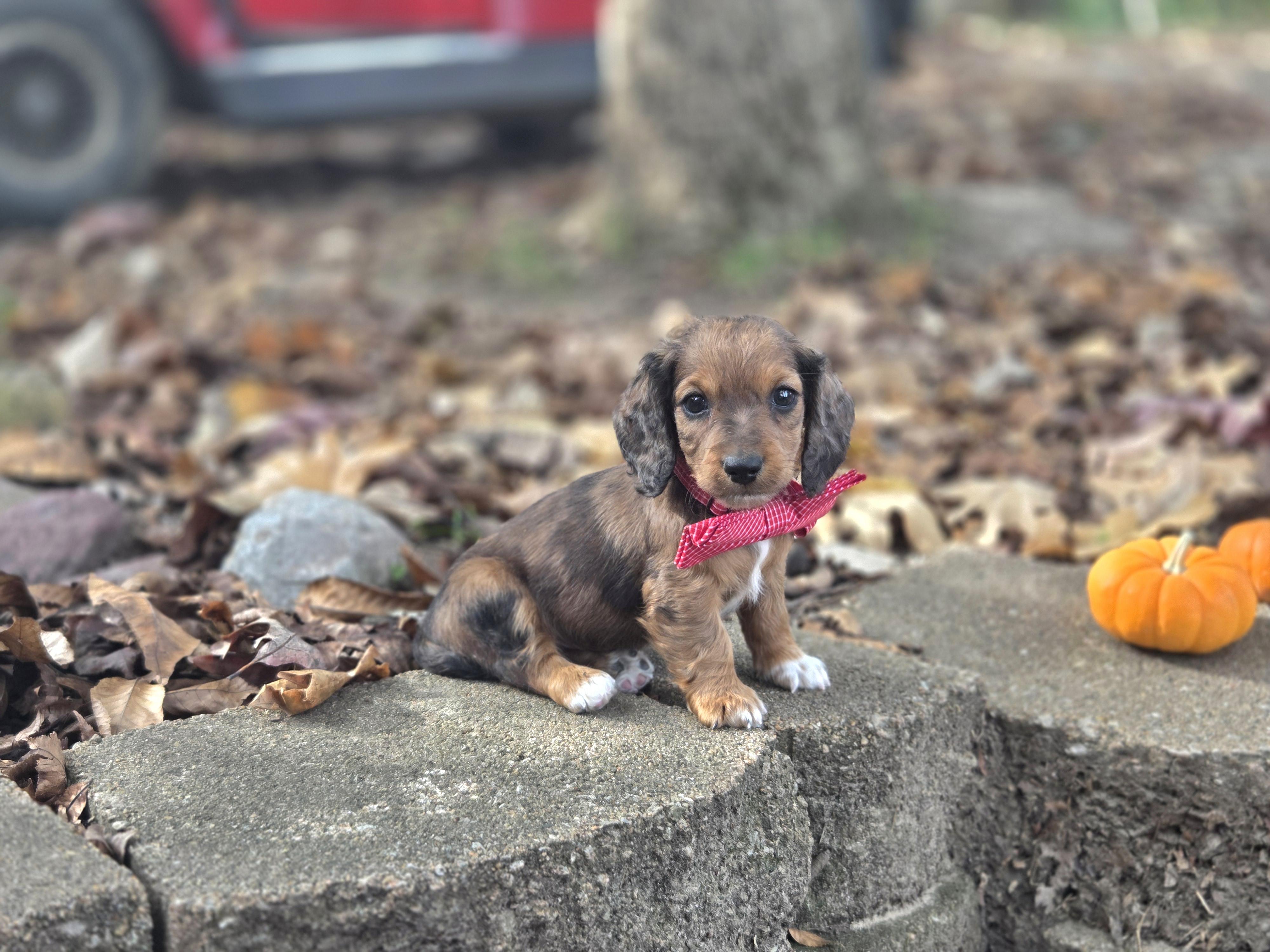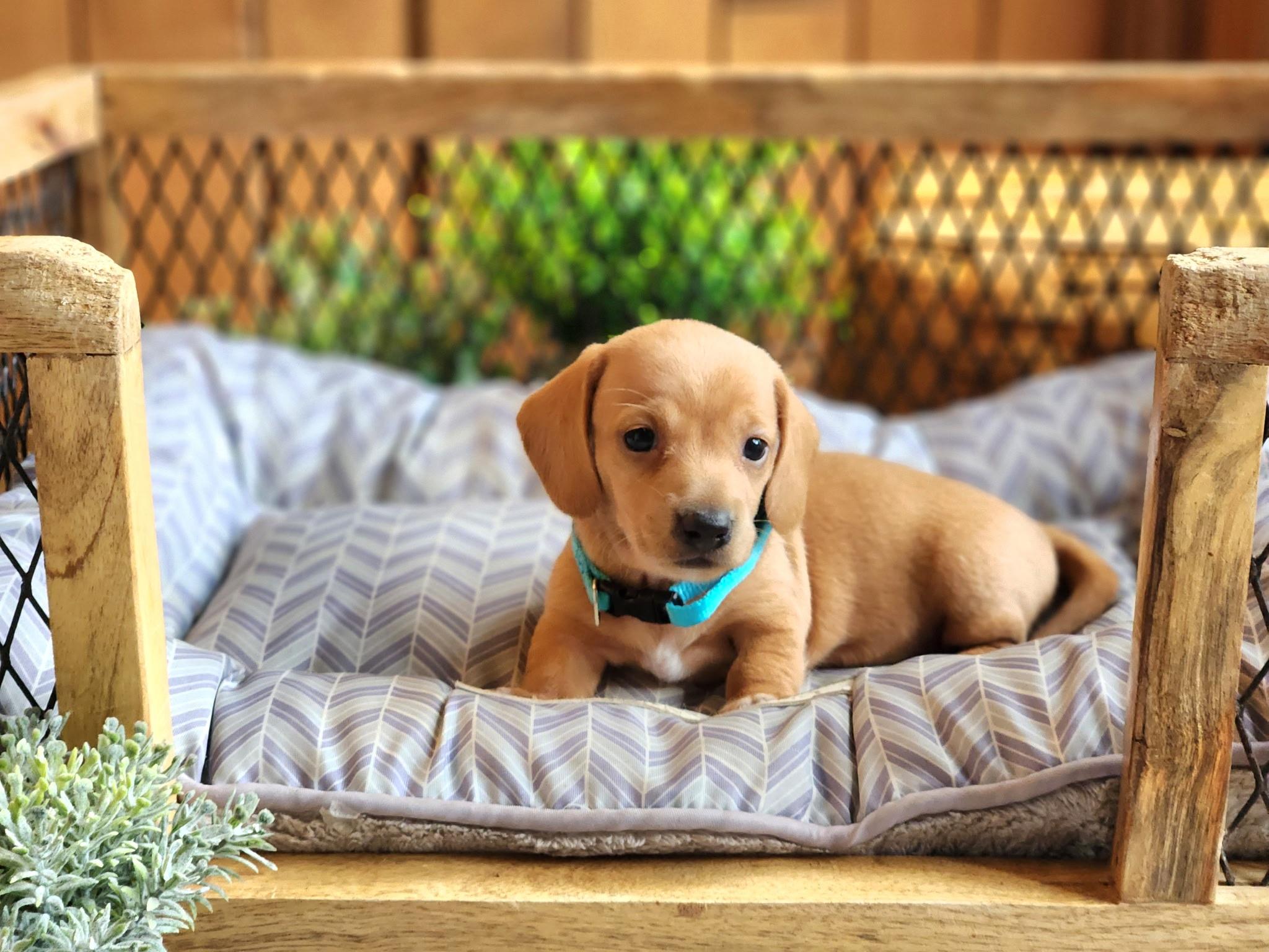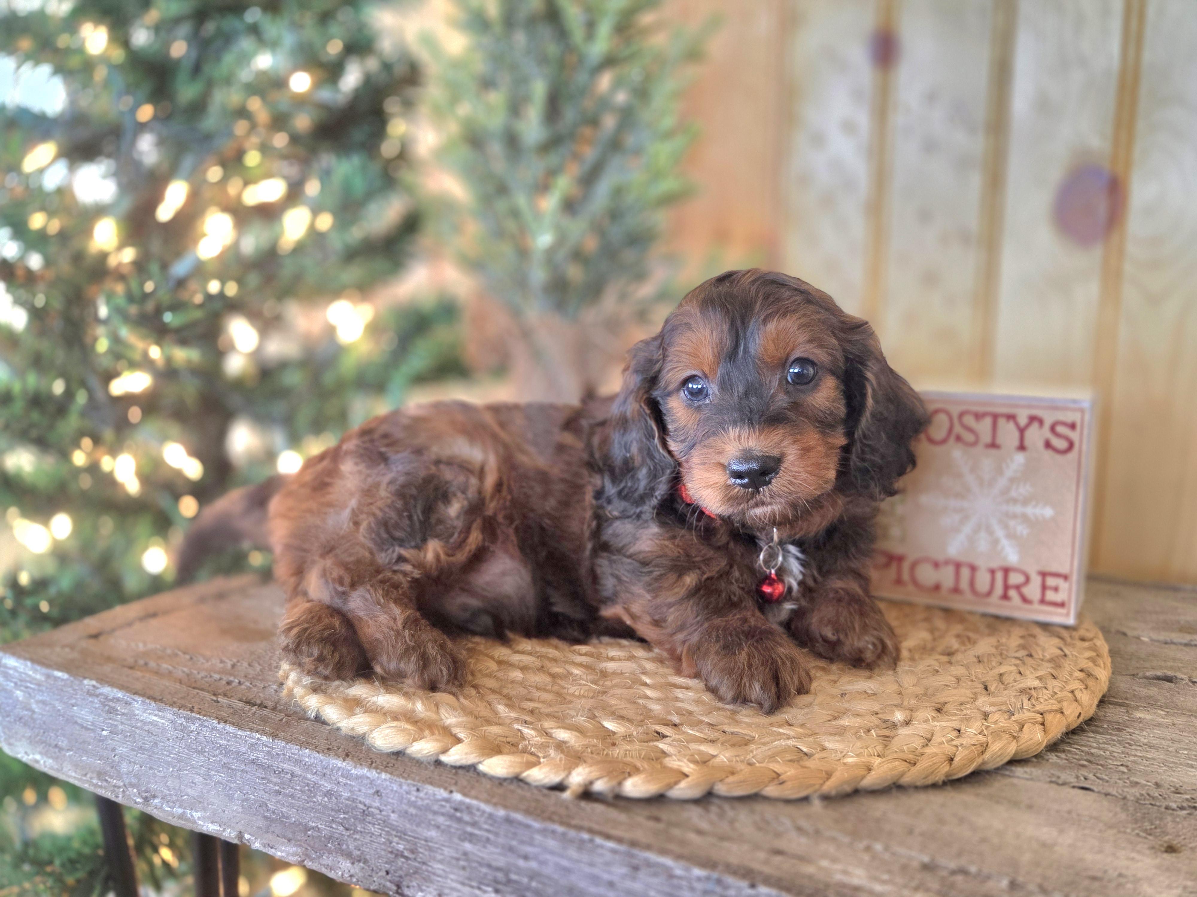 Our Cavapoo puppies are red. Dachshund puppies include piebald, cream, red, brindle, chocolate and cream, chocolate and tan, black and cream, black and tan, and dapple. Colors will vary depending on the parent dogs.