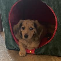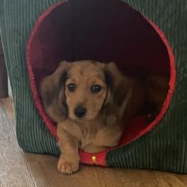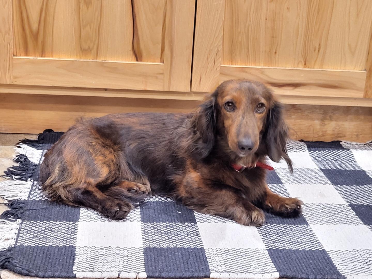 Little Bit is a female Dachshund. Carefully selected as a great representative of her breed, Brian & Martha decided to make her part of their program. Brian & Martha has passed Good Dog’s screening process, which involved a review of their breeding practices, environment, and the mental and physical health of their dogs.