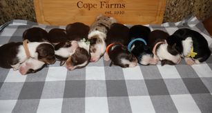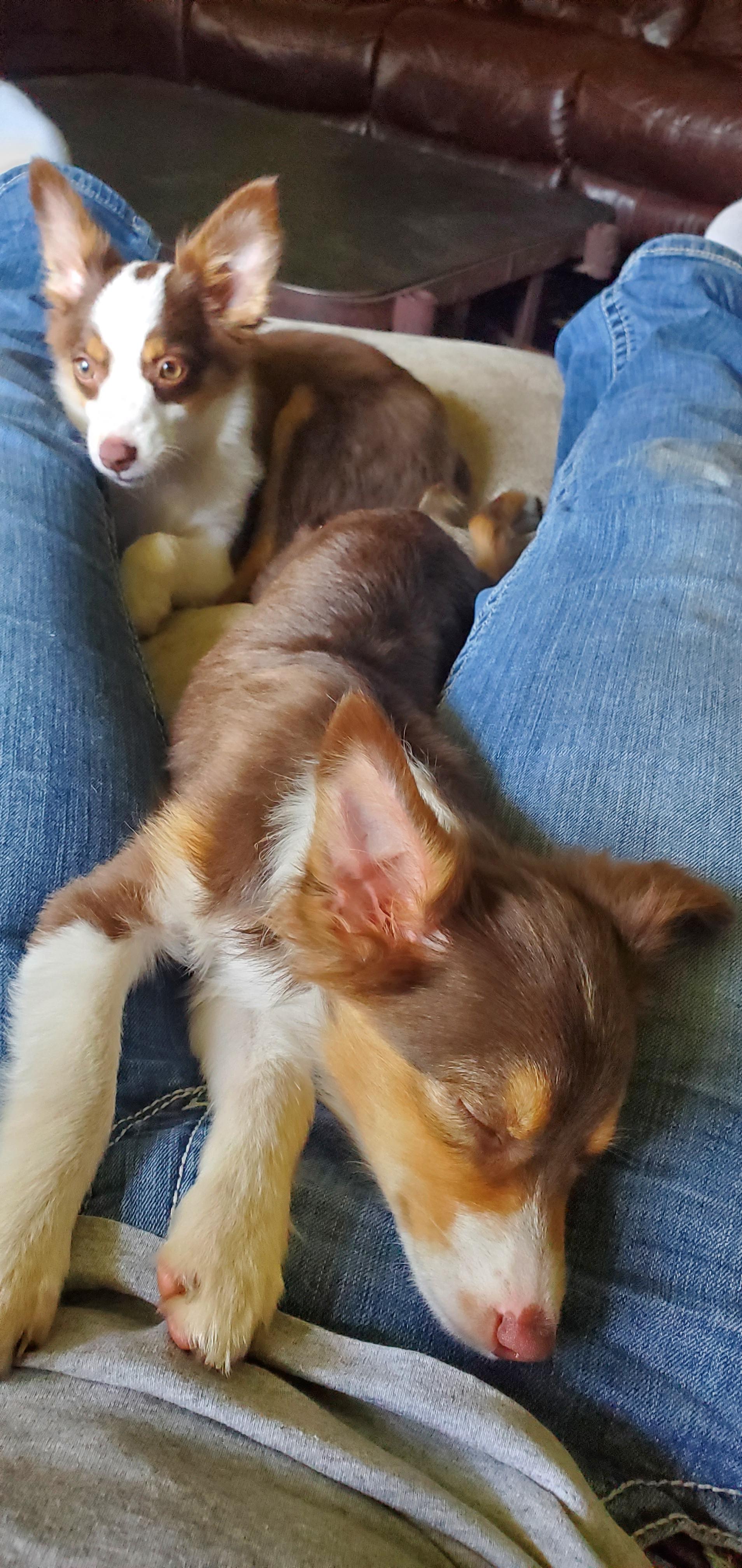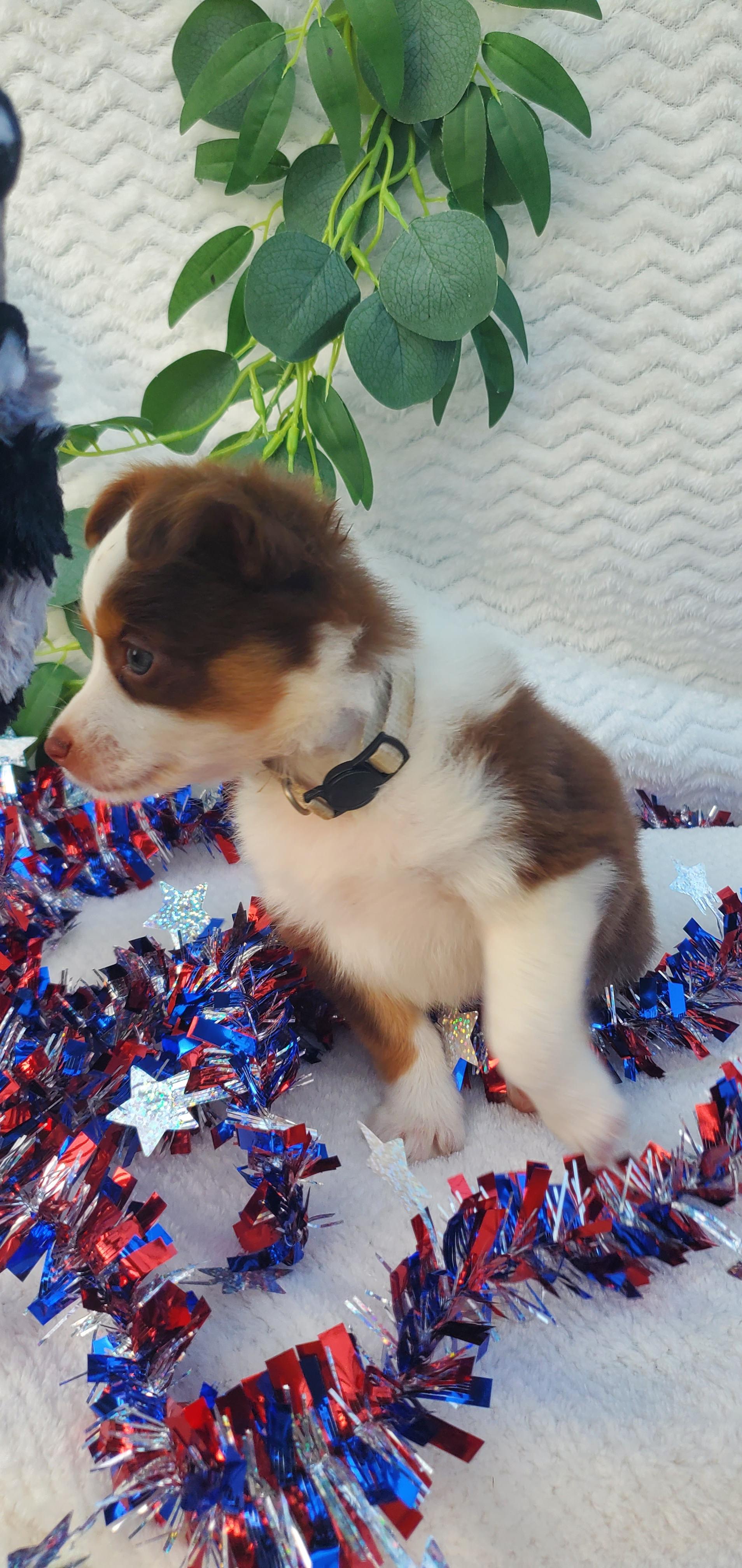 Our puppies include blue merle, black tri, red tri, and red merle. Colors will vary depending on the parent dogs.