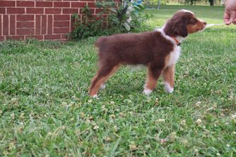 I'm Michelle C., the breeder behind Barnyard Mini Aussies located in Aurora, MO. I fell in love with the breed over 10 years ago, thus recently starting my breeding program endeavor. I plan to do agility training with my dogs while providing wonderful companions. I am always looking to better my genetics to continue to improve upon my line for generations to come.