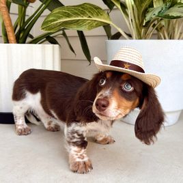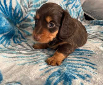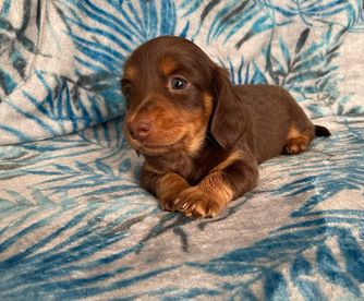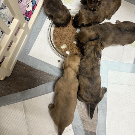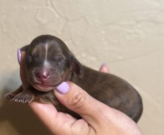 I could not be happier with my experience with Michaela!! We got our baby Rocky a month ago and we are so happy to say he is the most well behaved, happy, healthy dachshund ever!! Not to mention he is the cutest puppy in the world! We were so thankful for how Michaela raised him as a puppy and her commitment towards all of her dogs!! She sent us pictures and videos regularly and when we picked him up it went so smooth! It’s almost to good to be true but I’m happy to say I would buy from her again!!