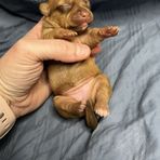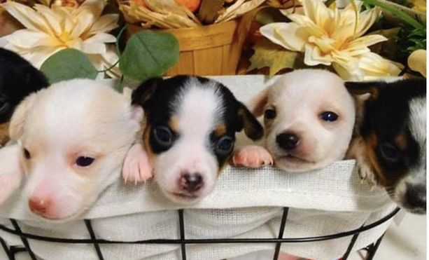 Our Chihuahua puppies include black, chocolate, cream, fawn, red, black sabled fawn, black sabled silver, blue, blue brindled fawn, blue fawn, chocolate blue, chocolate brindled fawn, chocolate sabled fawn, fawn brindled black, gold, silver, white, chocolate and tan, blue and white, blue and tan, fawn and white, cream and white, chocolate and white, black and white, black and tan, black and silver, black and red, gold and white, red and white, blue merle, and silver and white. Dachshund puppies include cream, red, black, chocolate, fawn (isabella), brindle, gray (blue) and tan, gray (blue) and cream, chocolate and tan, chocolate and cream, black and cream, blue and tan, and black and tan. Colors will vary depending on the parent dogs.