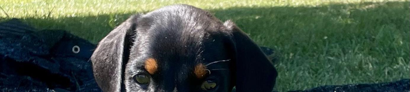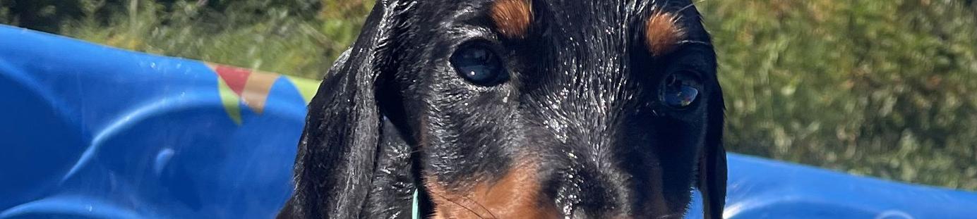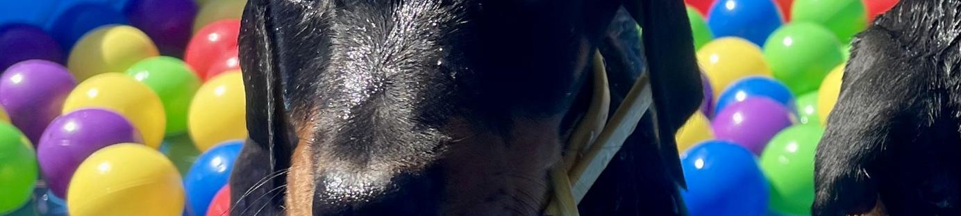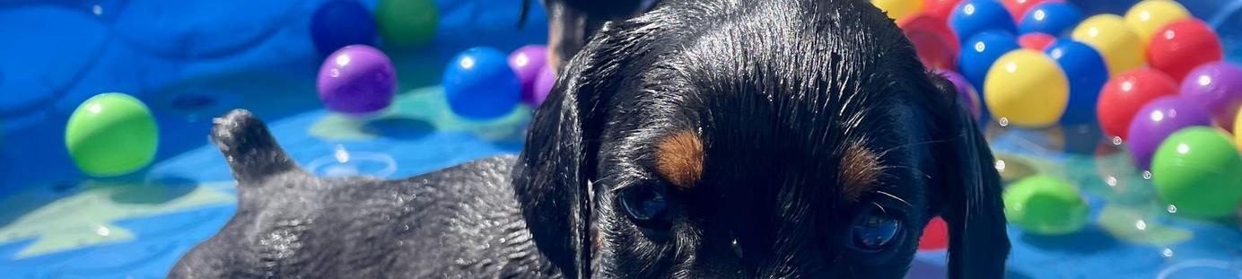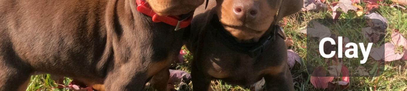 Our puppies include black and rust and red and rust. Colors will vary depending on the parent dogs.