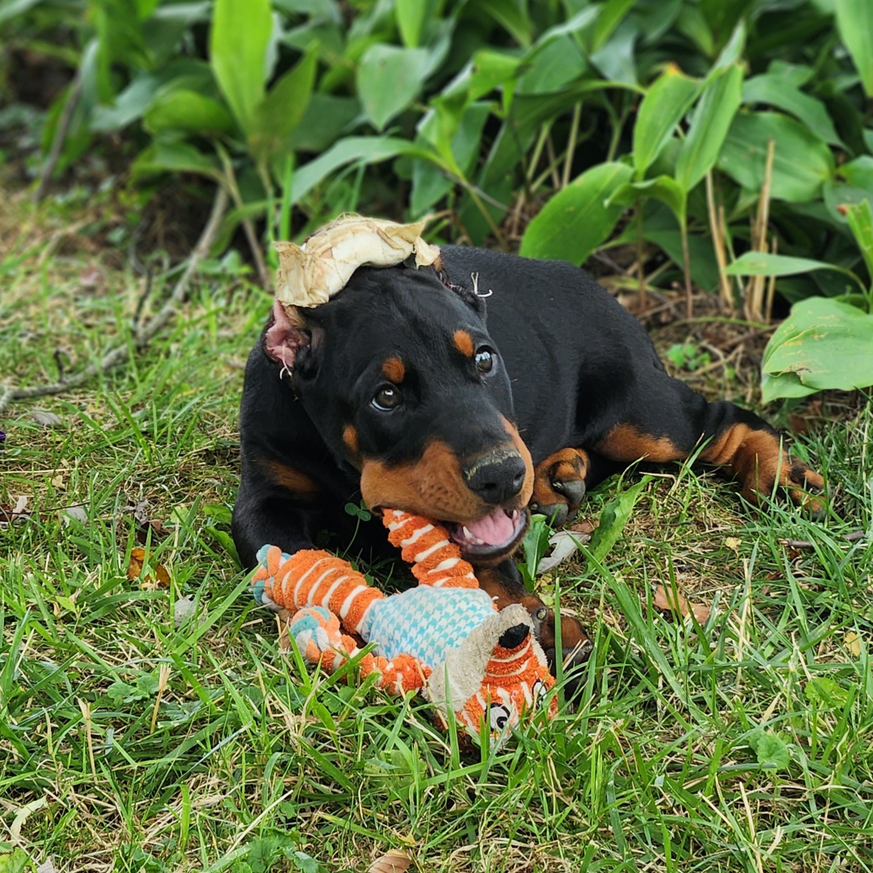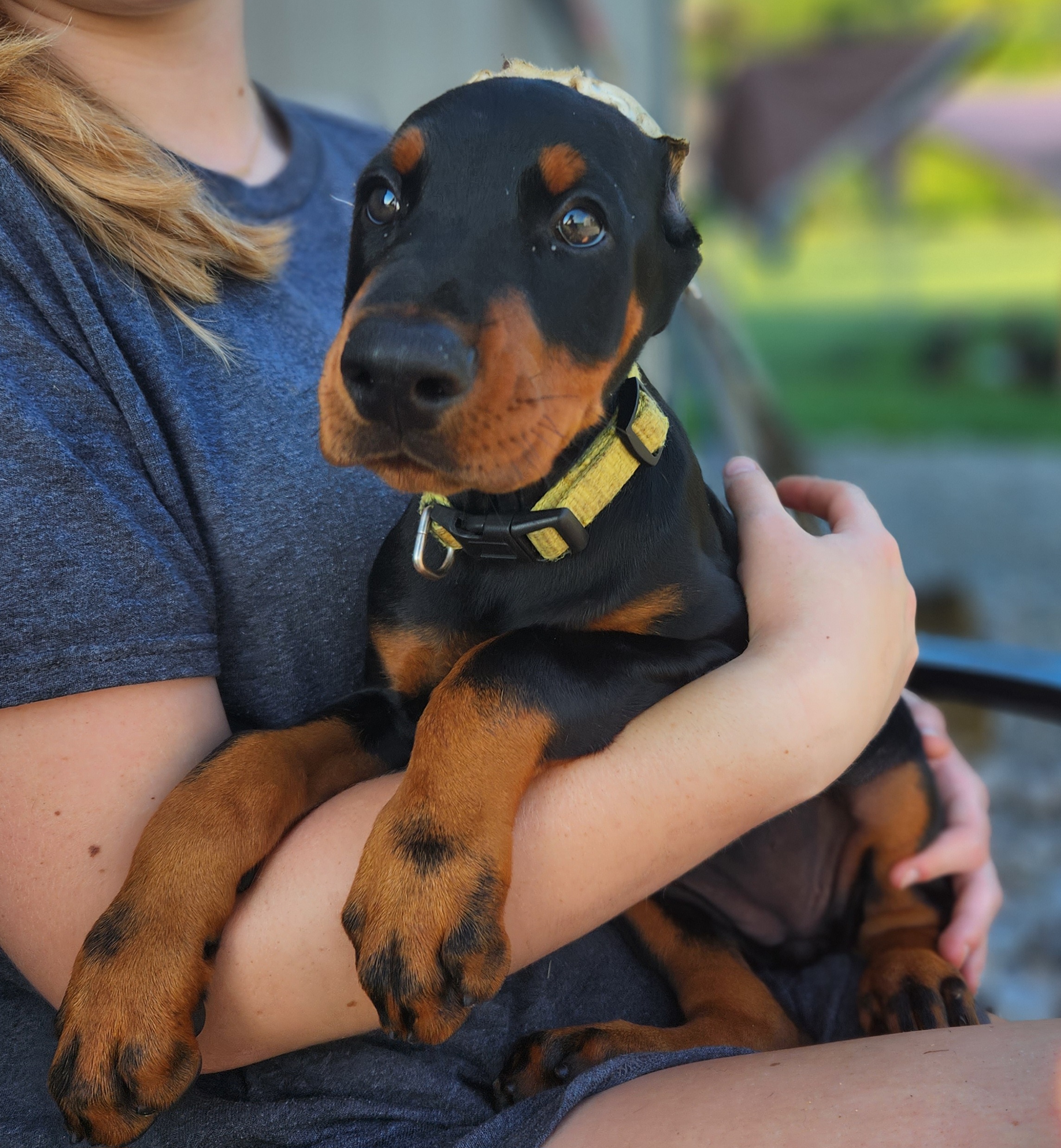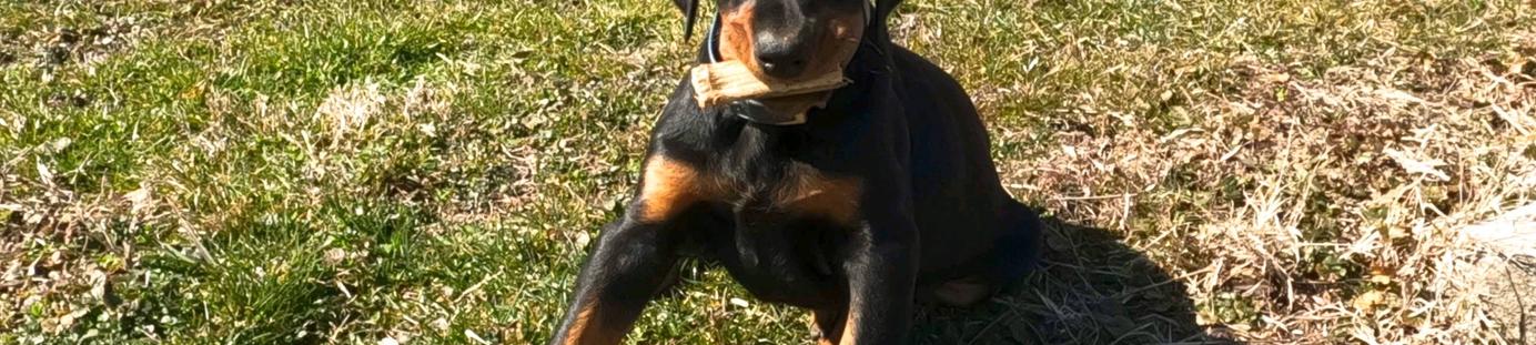 Our dogs are part of our daily life and family. Puppies are socialized and desensitized to ensure the best possible start. Puppies have their ears cropped by the nationally known Dr. Midgarden. Puppies go home with microchips. I also offer an optional puppy starter pack with some of the tried and true basics for Dobermans.