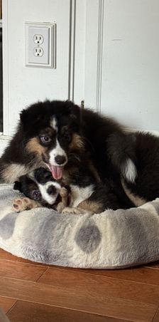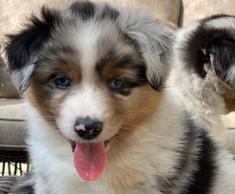 Our puppies include red tri-color, black tri, black, red merle, and blue merle. Colors will vary depending on the parent dogs.