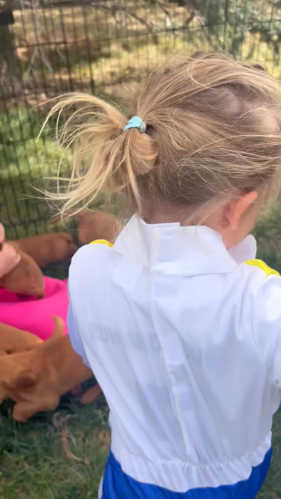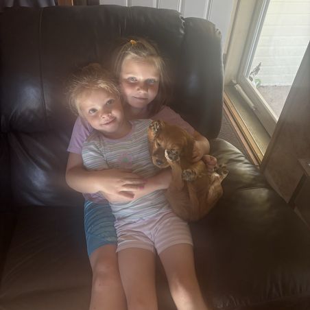 The neighbor girls socializing our last little girl Lainey !!! she’s absolutely the most laid-back and sweetest of all of her littermates. She’ll be extremely loyal and have extra love available!!!