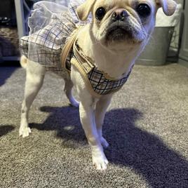Tater Tot is a male Pug. Carefully selected as a great representative of his breed, Vickie decided to make him part of their program. Vickie has passed Good Dog’s screening process, which involved a review of their breeding practices, environment, and the mental and physical health of their dogs.