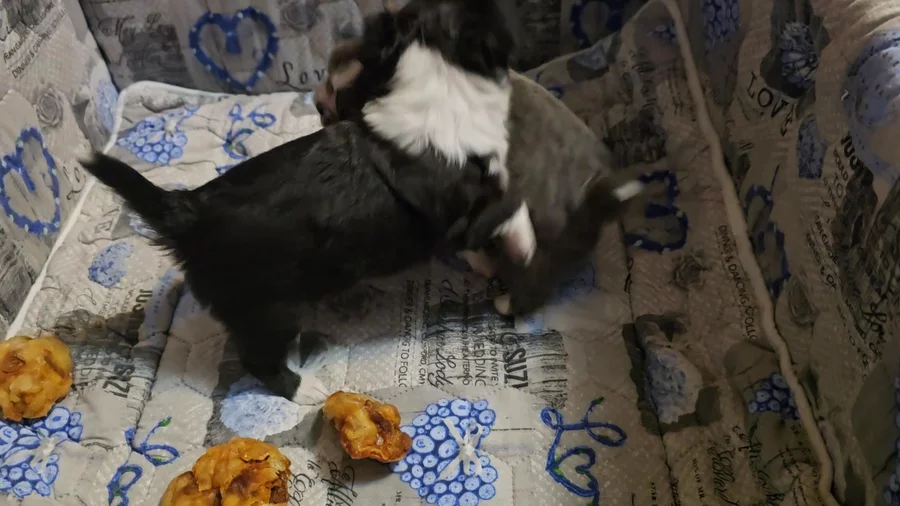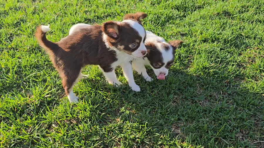Our puppies include chocolate, cream, blue, chocolate brindled fawn, chocolate sabled fawn, cream and white, red and white, black and white, black and tan, chocolate and tan, blue merle, and black and silver. Colors will vary depending on the parent dogs.