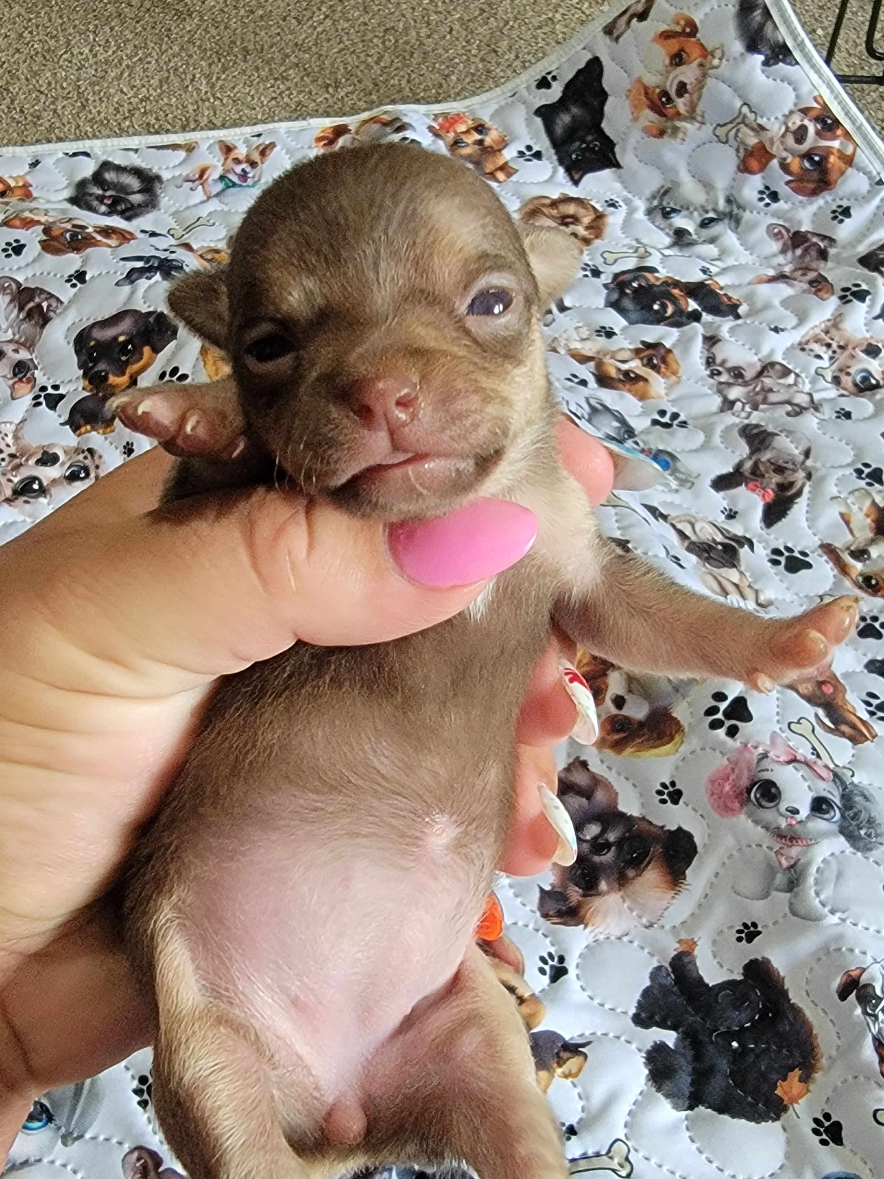 Amanda was so helpful and got my baby to me safe and sound within 24 hours! He arrived healthy, almost fully potty trained (he’s only 9 weeks), and happy! Amanda is ethical and cares so much. I’m so glad I have a puppy from her!