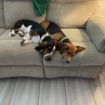 Our family is so thankful for Darlene and Baying Bassets for our sweet Lacie. From the weekly updates and pictures until we were able to bring her home to the blanket and toys with her mom, dad and siblings scent on them to make the transition easier on her. Lacie has been the perfect addition to our family and cuddle buddy to her now older brother.