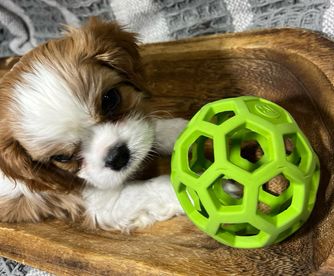 Our puppies include blenheim, ruby, tri-color, and black and tan. Colors will vary depending on the parent dogs.