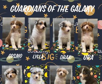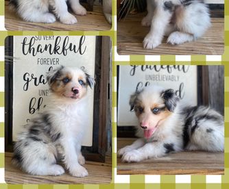 Our puppies include blue merle and black tri-color. Colors will vary depending on the parent dogs.