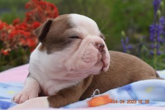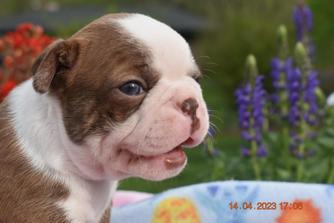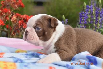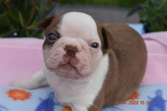 Miaka is a female Boston Terrier. Carefully selected as a great representative of her breed, Michael decided to make her part of their program. Michael has passed Good Dog’s screening process, which involved a review of their breeding practices, environment, and the mental and physical health of their dogs.