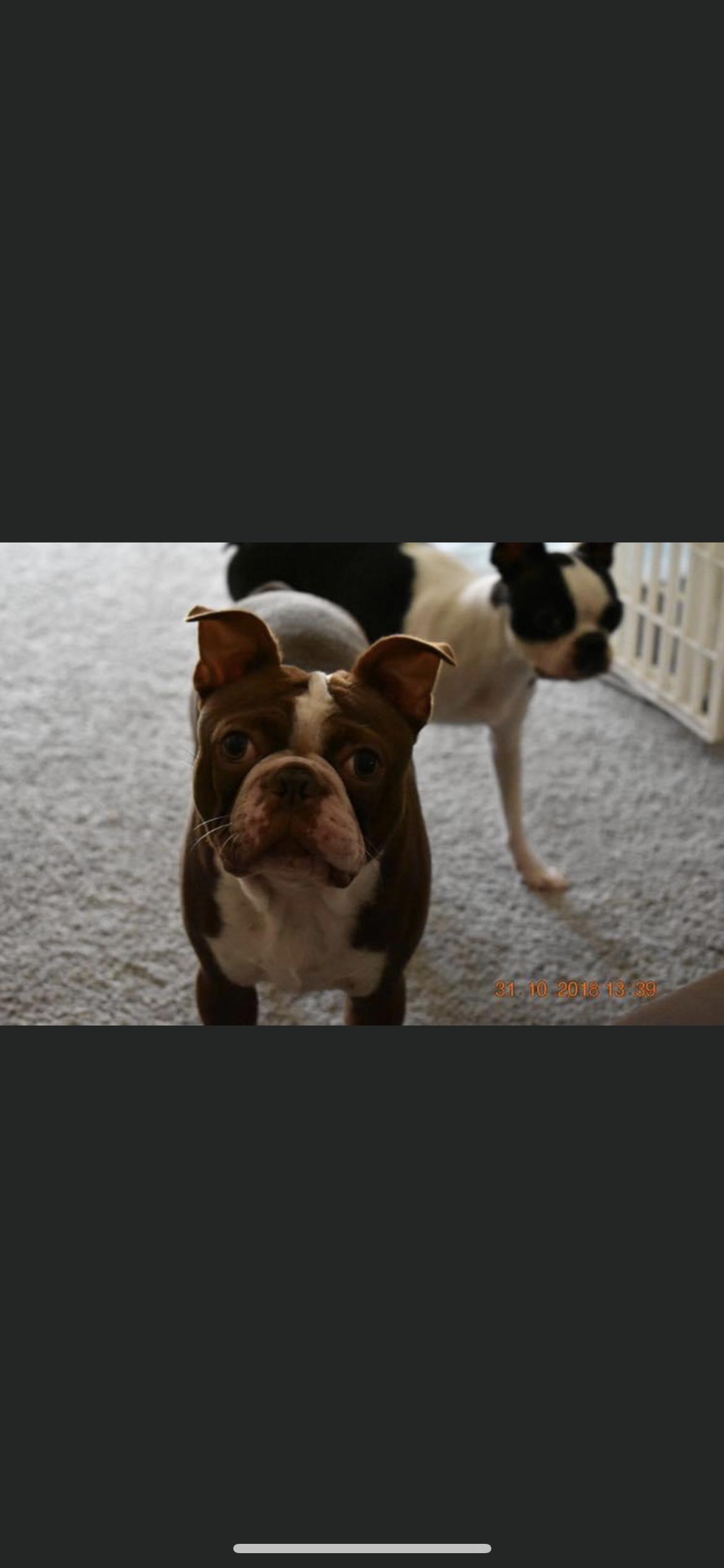 Layla is a female Boston Terrier. Carefully selected as a great representative of her breed, Michael decided to make her part of their program. Michael has passed Good Dog’s screening process, which involved a review of their breeding practices, environment, and the mental and physical health of their dogs.