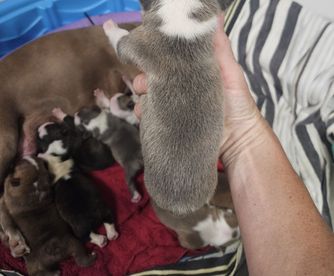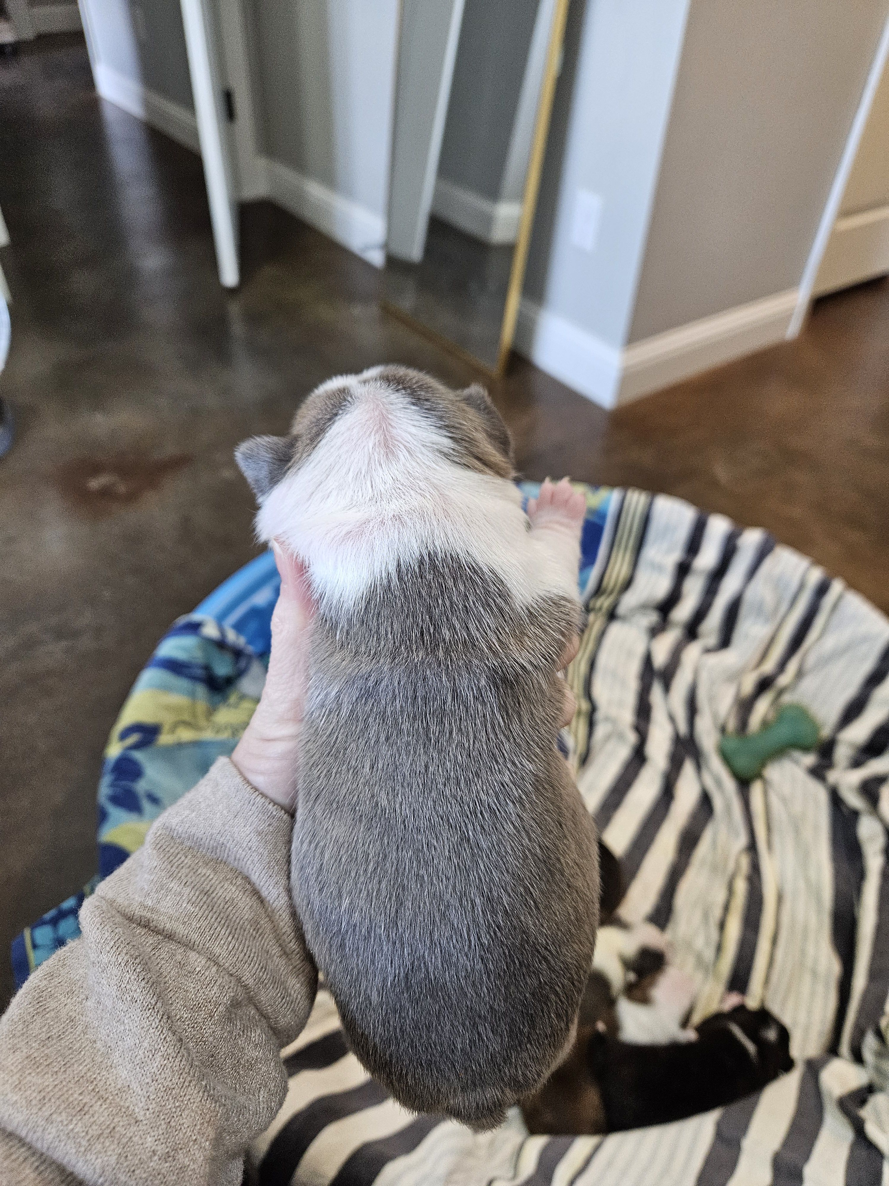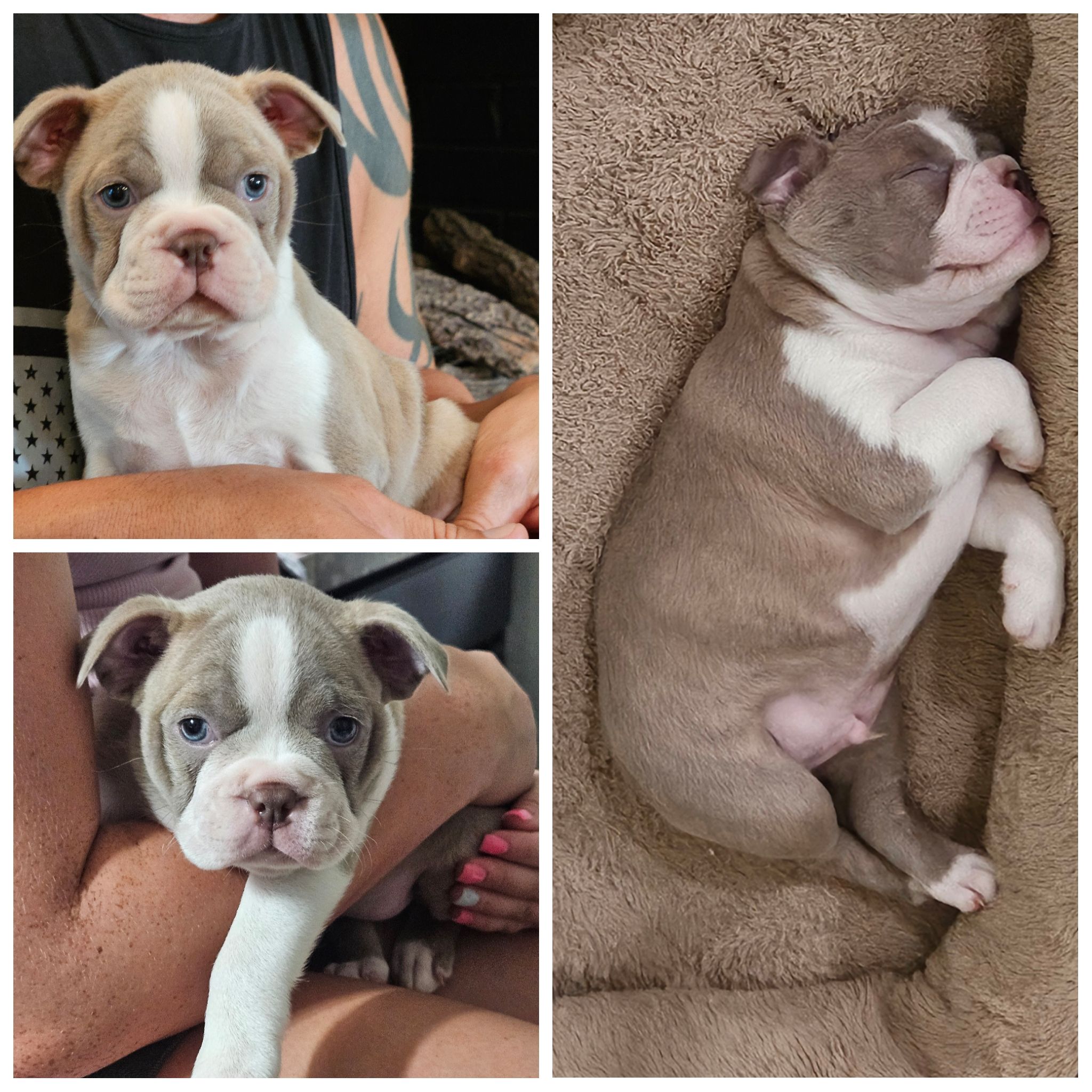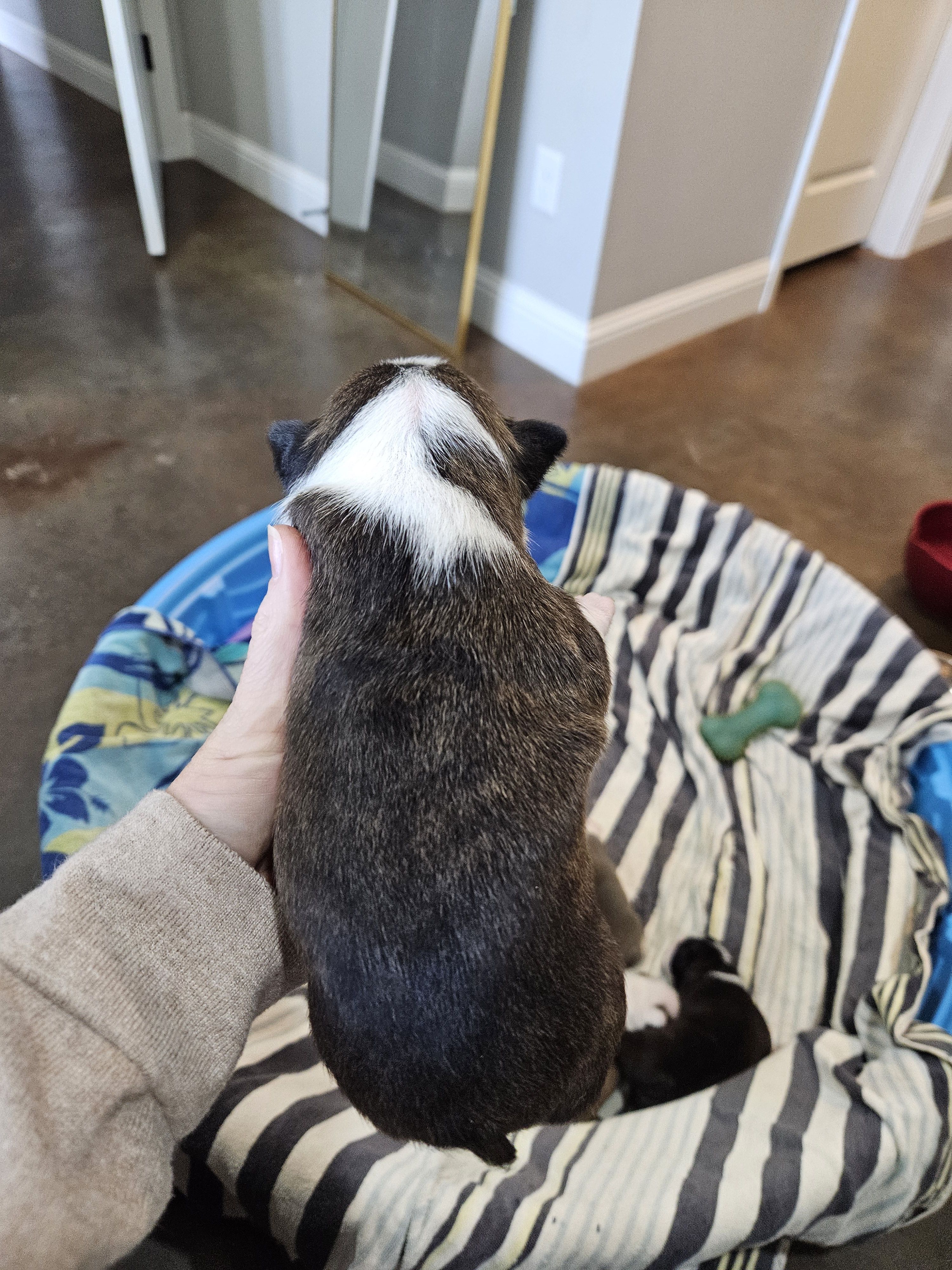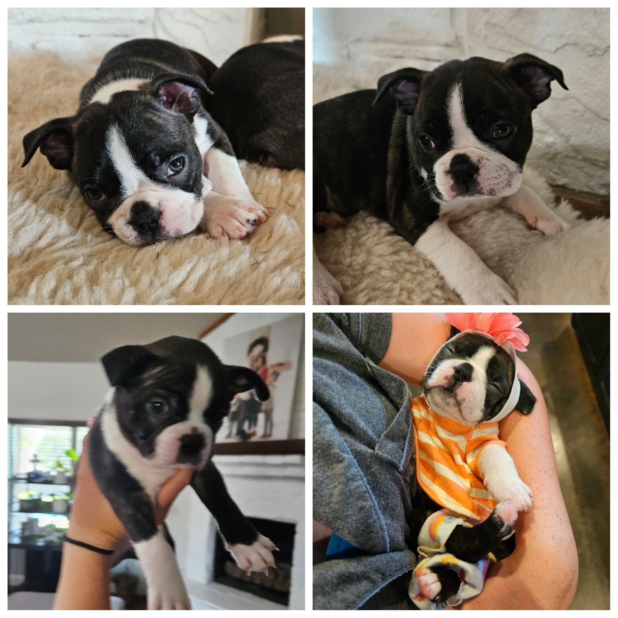 We had our male Boston since the summer of 2022. We got our female last summer and wanted to eventually have a litter or two. This is our first litter.