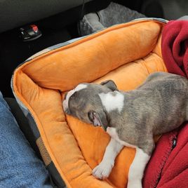 Bella is super sweet and cuddly, food motivated. Likes to play and go on walks but it on the calmer side for sure. Very stubborn and dominate in the group.