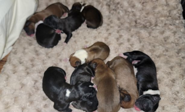 Puppy prices include a $500 non-refundable deposit and between $1,300 - $1,500 final payment, before taxes & fees.