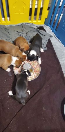 The babies have started on solid food, they are growing and doing great with their beginner house training.