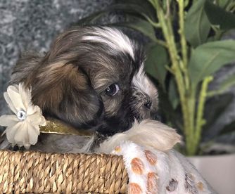 Pebbles is a female Shih Tzu. Carefully selected as a great representative of her breed, Brandi decided to make her part of their program. Brandi has passed Good Dog’s screening process, which involved a review of their breeding practices, environment, and the mental and physical health of their dogs.