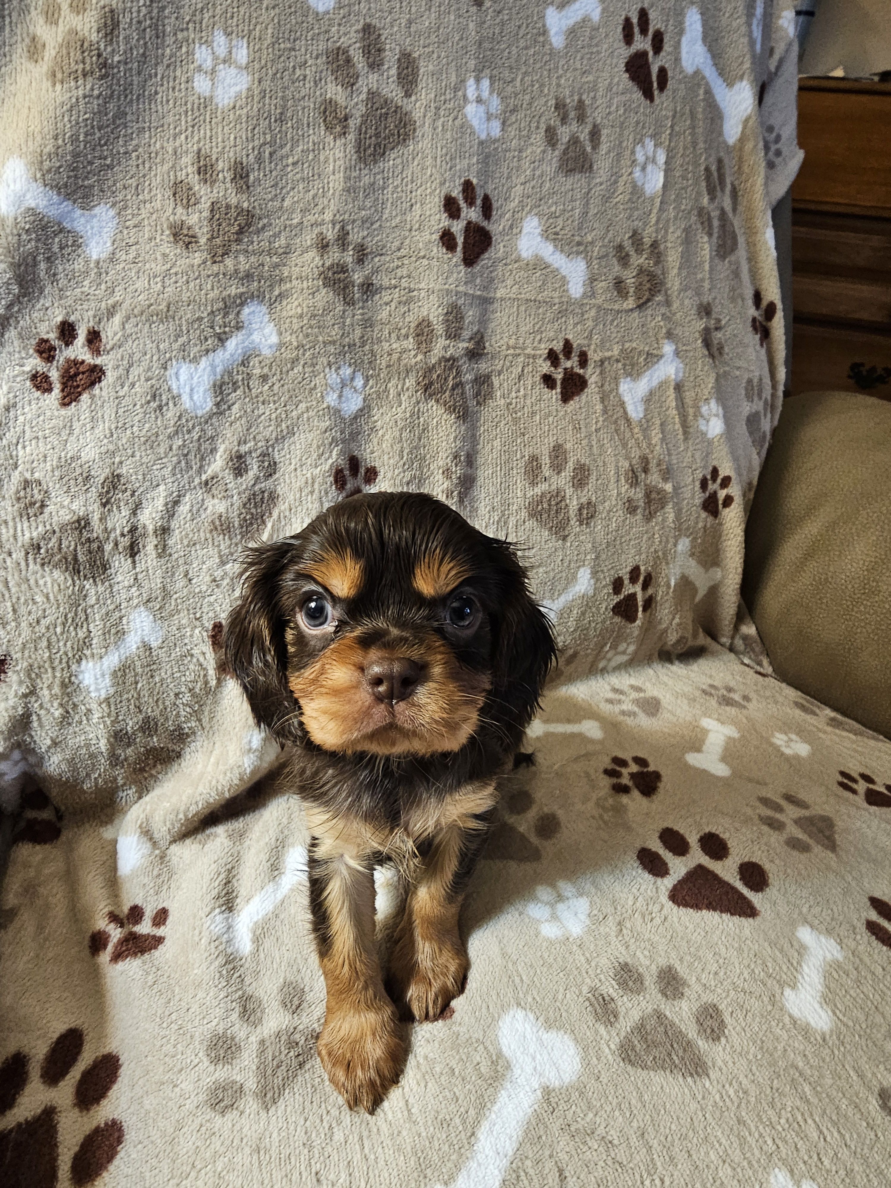 Our puppies include blenheim, ruby, black and white, tri-color, black and tan, and chocolate. Colors will vary depending on the parent dogs.