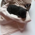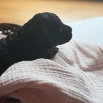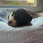She is a beautiful black phantom moyen poodle. She is so sweet and laid back!
