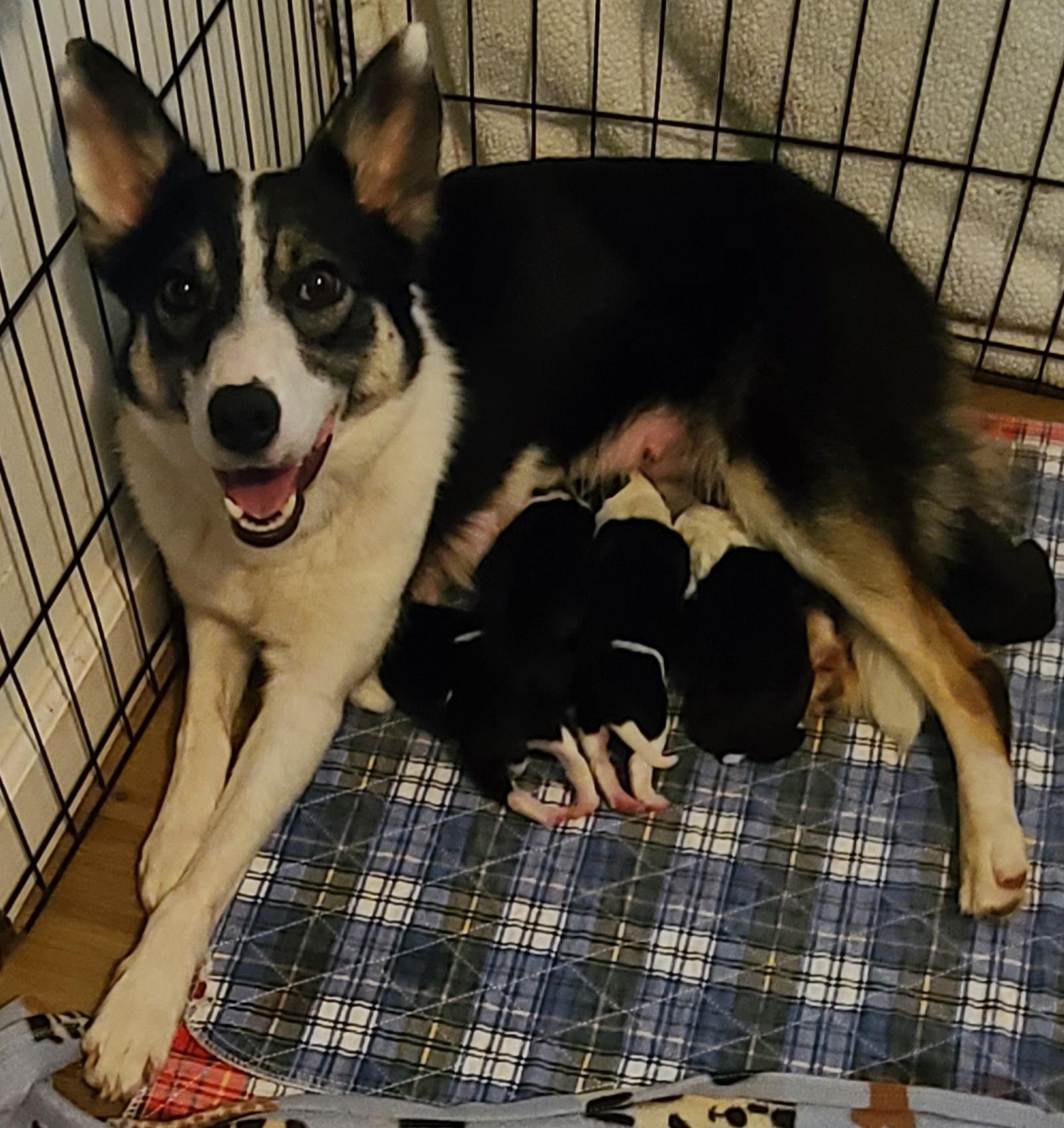 Black tri, smallish, very biddable, stylish, big cuddle bug.