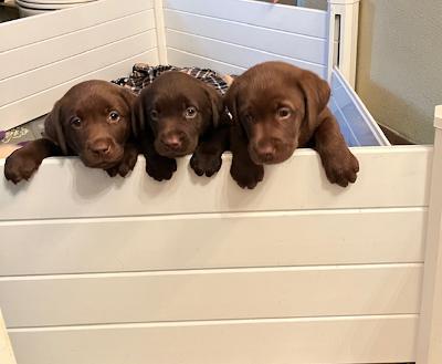 Our puppies include chocolate and yellow. Colors will vary depending on the parent dogs.