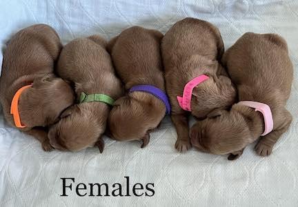 Our puppies include dark golden and golden. Colors will vary depending on the parent dogs.