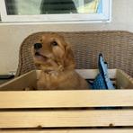 Raised here in HB. I grew up around many dogs, worked for veterinarians, and have been breeding for years. We found our new love for Goldens when we found Hope! We got her in Minnesota near the Mayo Clinic when our daughter was sick. We found Hope when we drove through snow and met this special pup. We decided to start a new breeding program around her. Temperament-calm-love-smart-golden-dark golden