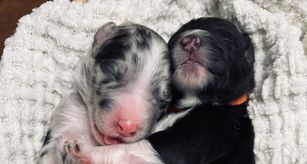 Our puppies include blue merle and black and white. Colors will vary depending on the parent dogs.