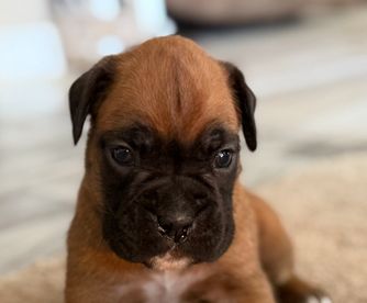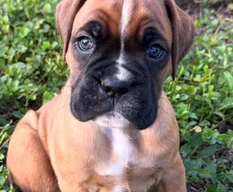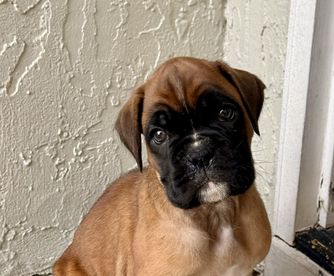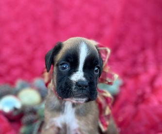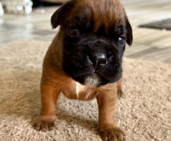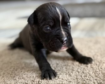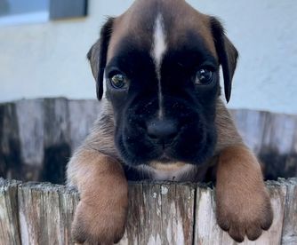 Our Boxer puppies include fawn, brindle, and white. French Bulldog puppies include cream, blue fawn, and blue. Colors will vary depending on the parent dogs.