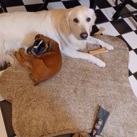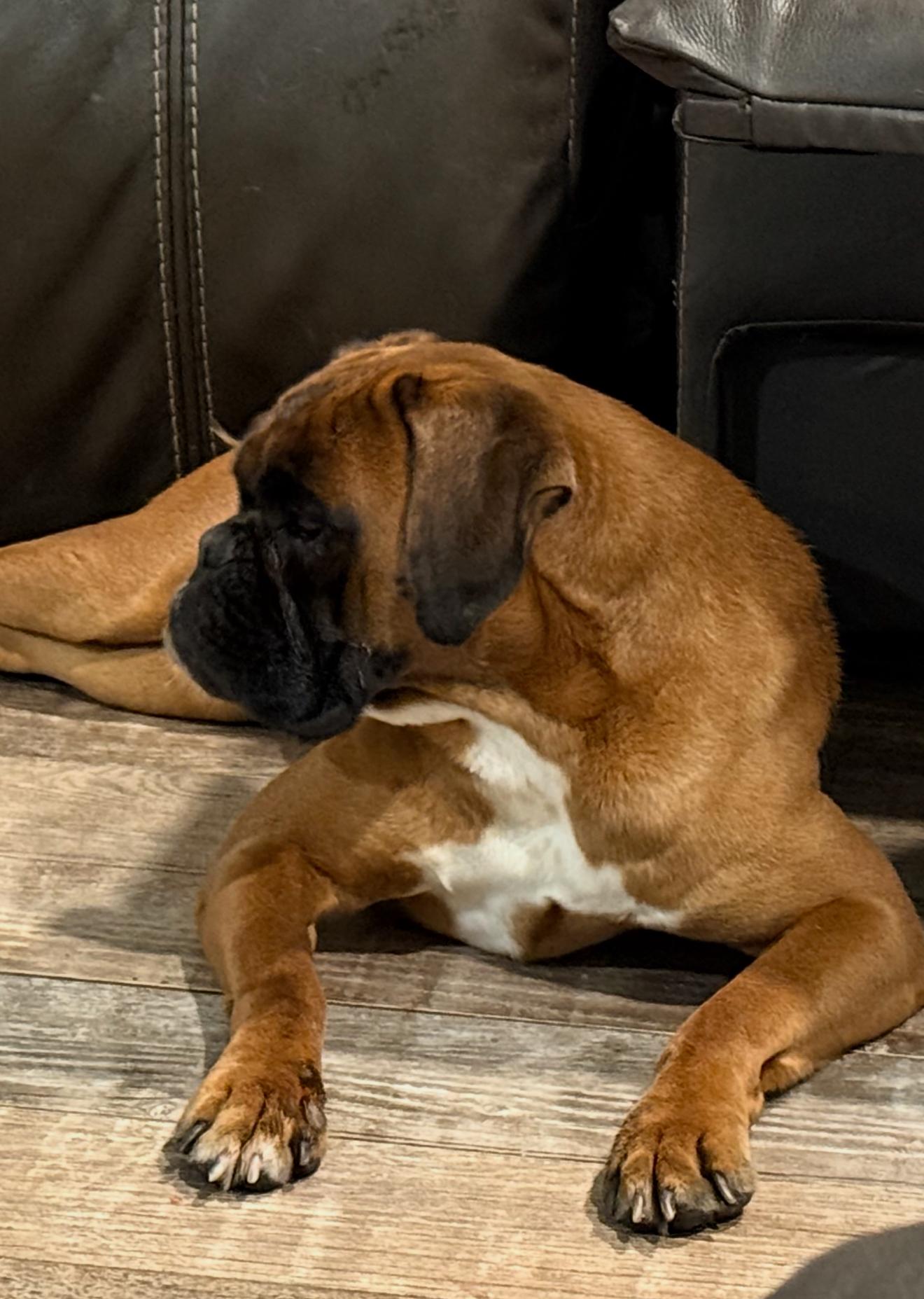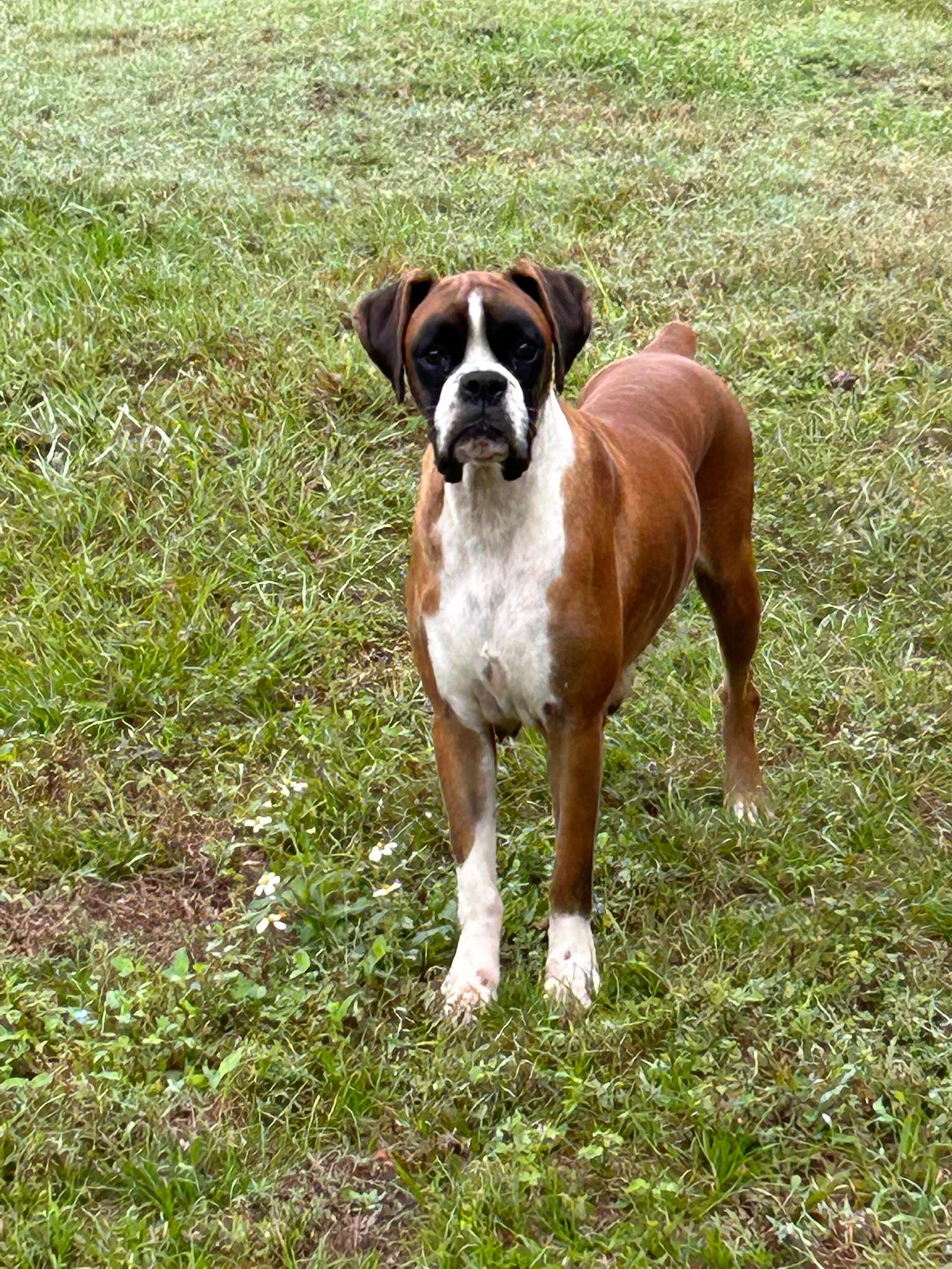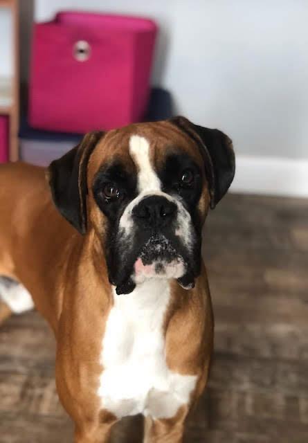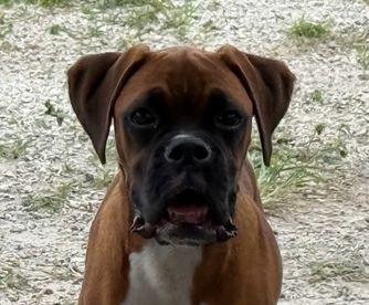 Hannah is a female Boxer. Carefully selected as a great representative of her breed, Margaret decided to make her part of their program. Margaret has passed Good Dog’s screening process, which involved a review of their breeding practices, environment, and the mental and physical health of their dogs.